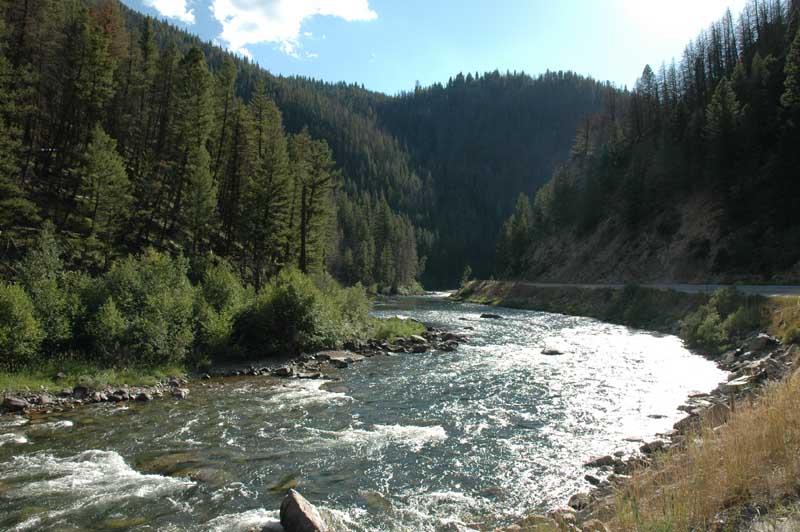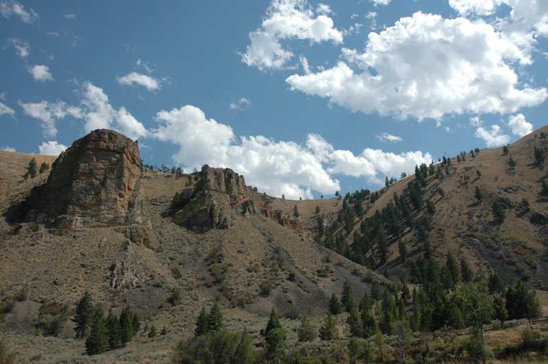 We get to the top of the mountain and begin a gentle descent through the woods, Jan starts breathing again, and we go through the town of Cherry which consists of a few houses by the side of the road. We stop to let a young man lead a handful of longhorn cattle across the road. The dueling banjo theme from “Deliverance” is running through my head.