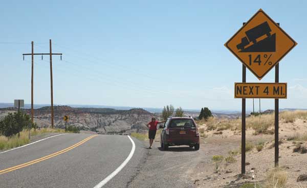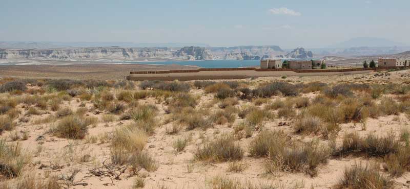 We head south on Route 89 through miles of dry scrub, then we see some water in the distance. It’s our first view of Lake Powell.