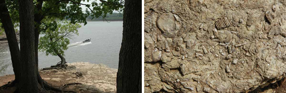 It’s on the grounds of a beautiful recreation area with facilities for hiking, camping and water sports. And the region’s very rich in fossils which are regularly uncovered by the flowing and flooding water.
