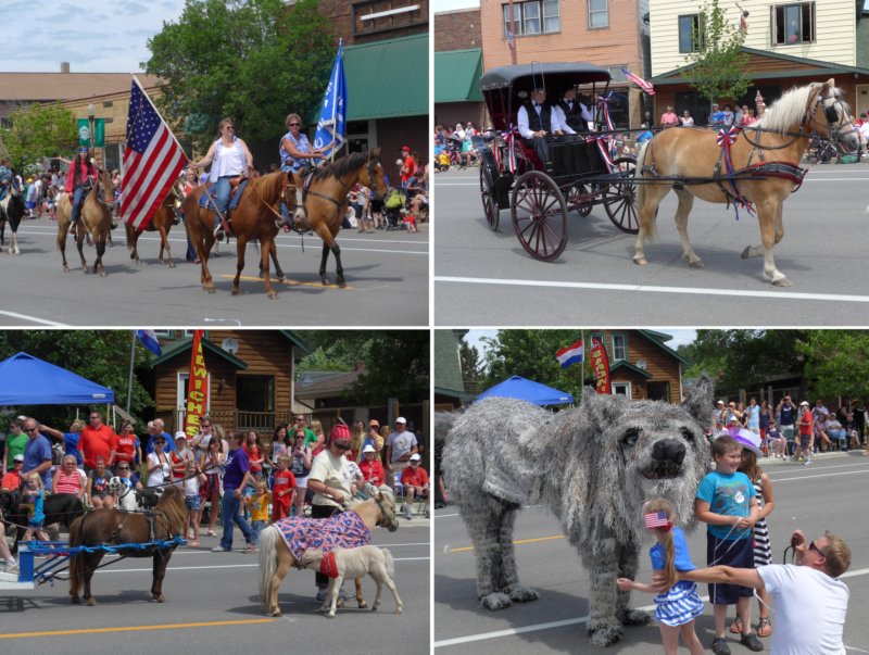 Veterans, bikers & kids chasing the candy strewn by marchers...