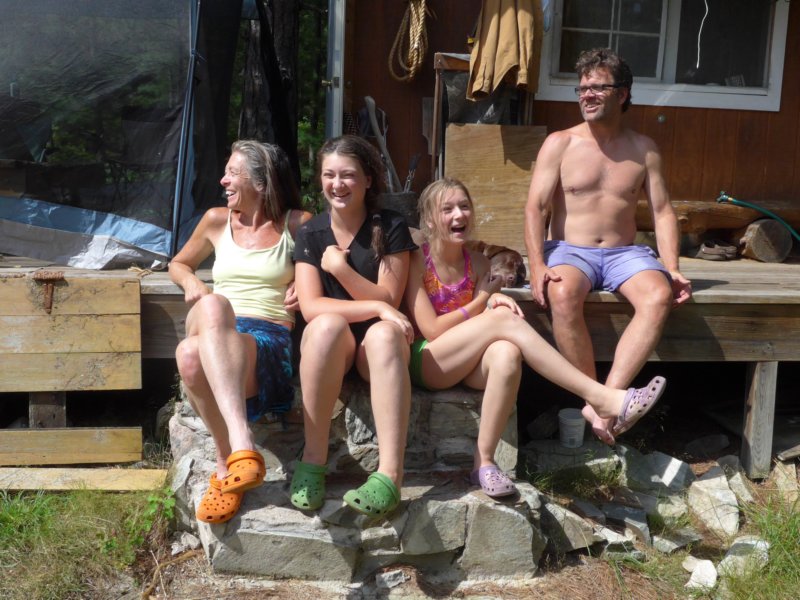 ...with Jeff on the steps of their kitchen cabin...
